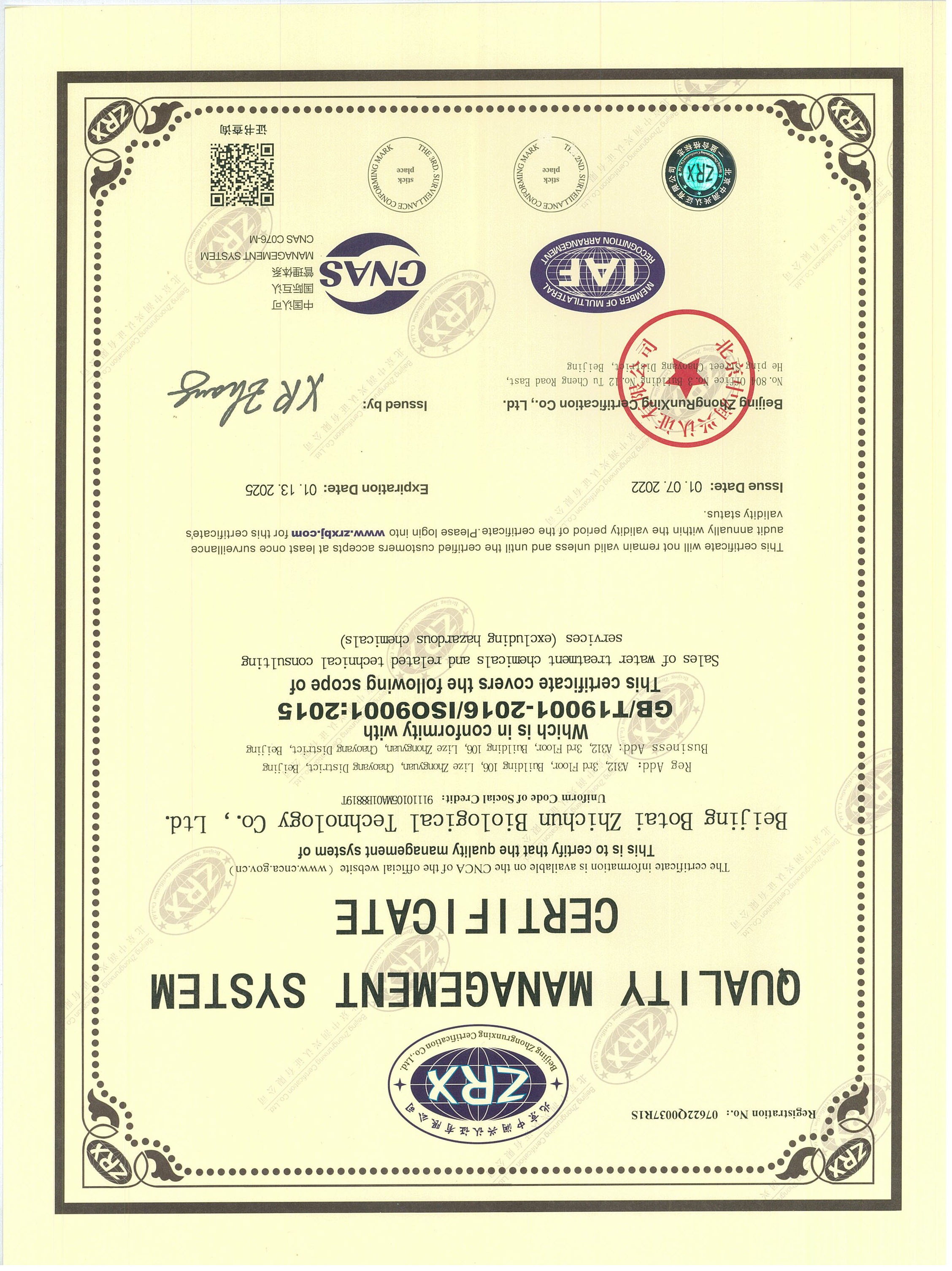 Quality Management System Certificate