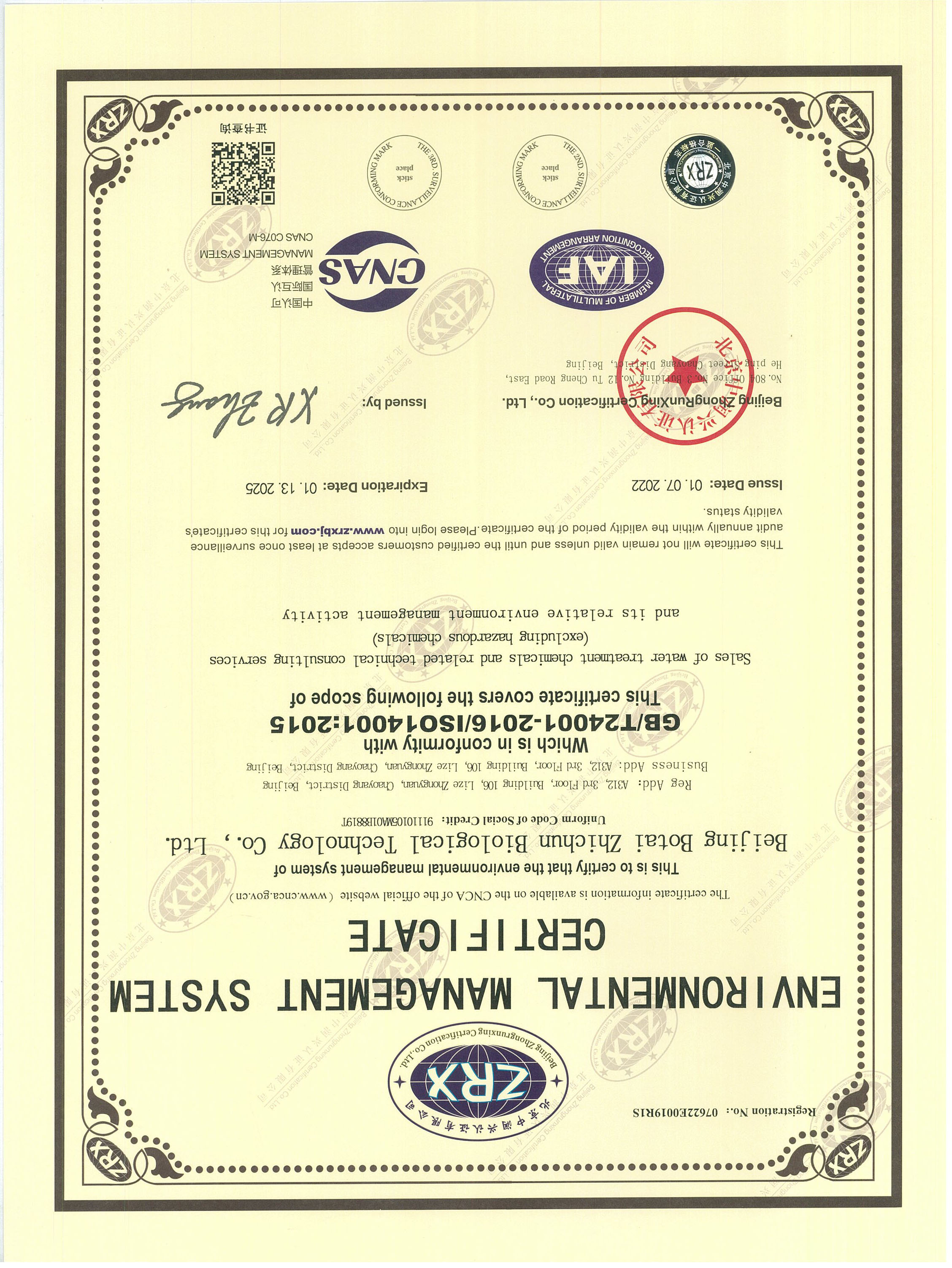 Environmental Management System Certificate
