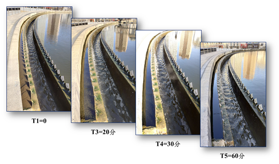 原位提高處理規(guī)?!本┖5砟车叵挛鬯幚韽S 應(yīng)用背景:北京海淀某地下污水處理廠規(guī)模8萬m3/d。二沉池原設(shè)計(jì)偏小,造成污水處理廠無法滿負(fù)荷運(yùn)行。 解決思路:二沉池配水渠投加NFSSS納米絮凝劑,強(qiáng)化泥水分離