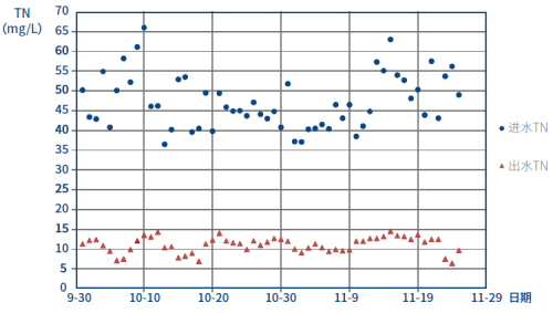 投加碳源后進(jìn)出水TN數(shù)據(jù)