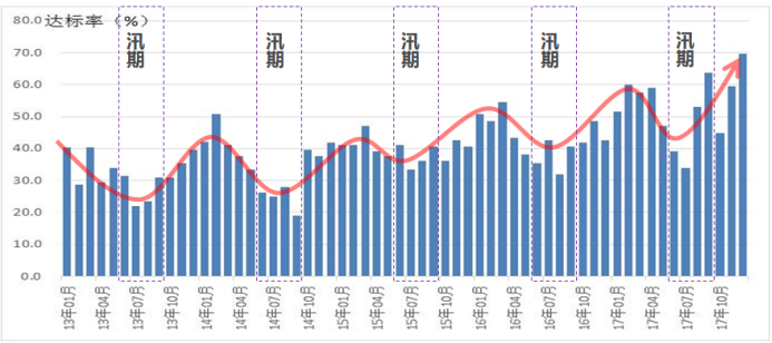 某國控?cái)嗝?/span>2013-2017年間達(dá)標(biāo)率波動(dòng)