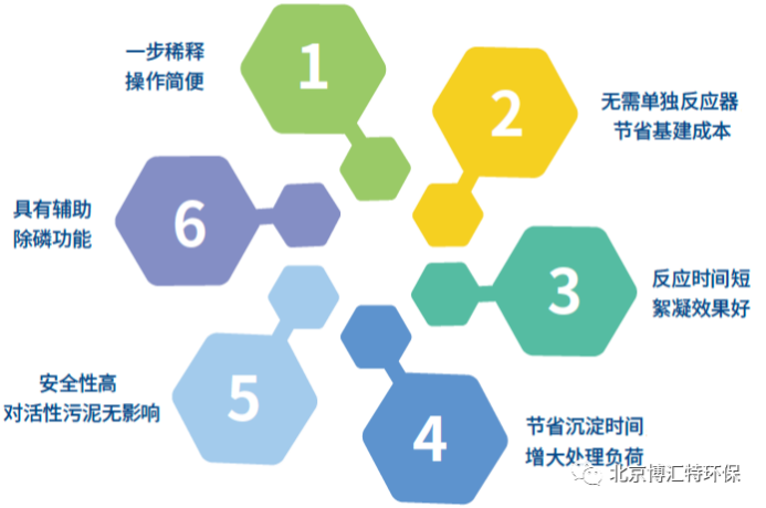 鑒于上述溢流污染解決方案的弊端,基于我國污水處理廠進(jìn)水特性,博匯特子公司博泰至淳聯(lián)合清華大學(xué)、瀘州水務(wù)集團(tuán)污水處理有限公司經(jīng)過近幾年的長期合作研究,探索出了一條適合我國污水處理廠現(xiàn)狀且經(jīng)濟(jì)高效的溢流污染控制新方案:即在不改變污水處理廠原有工藝的前提下,基于雨季水量大而污染物濃度僅為設(shè)計(jì)值一半甚至更低的現(xiàn)狀情況下,通過在二沉池進(jìn)水投加新型NFSSS絮凝劑助力污泥快速沉降,將二沉池負(fù)荷提高2-3倍乃至更高,并結(jié)合工藝調(diào)控,達(dá)到超水量1.5-2倍的達(dá)標(biāo)運(yùn)行,從而有效解決了雨季溢流污染問題。