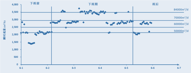 雨季問題:該污水處理廠設(shè)計(jì)處理規(guī)模為2.0萬m3/d,雨季時(shí)水量超過3.0萬m3/d,產(chǎn)生溢流污染。