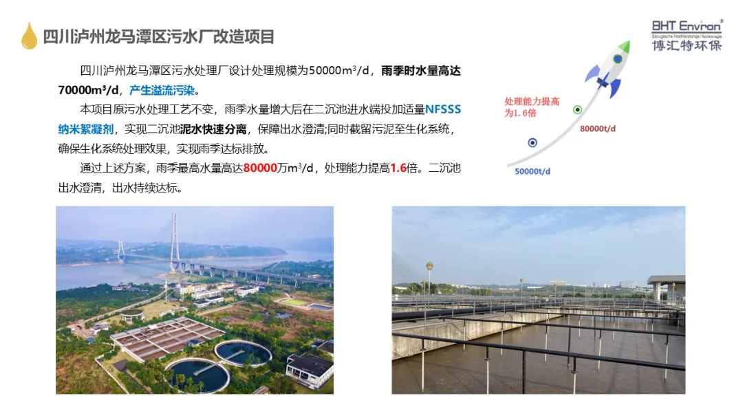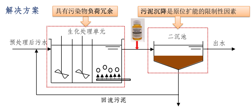 博泰至淳研發(fā)團(tuán)隊(duì)與清華大學(xué)環(huán)境學(xué)院聯(lián)合研發(fā)的基于納米絮凝劑的污水處理廠原位擴(kuò)能技術(shù),通過(guò)在二沉池投加具有高效快速凝結(jié)、輔助去除污染物和無(wú)毒無(wú)害等特點(diǎn)的NFSSS納米絮凝劑,縮短二沉池污泥沉淀時(shí)間,實(shí)現(xiàn)泥水快速分離。在無(wú)需新建構(gòu)筑物的情況下,通過(guò)對(duì)整個(gè)污水處理廠系統(tǒng)校核,改造不足工藝階段,形成污水處理廠原位擴(kuò)能技術(shù),實(shí)現(xiàn)不停產(chǎn)不減產(chǎn)方式的原位升級(jí)。